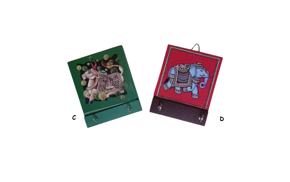 This bright key holder s made from wood and enhanced with ethnic digital prints. This is a wonderful choice for wall décor and as a key holder. Also, a good choice for gifting.