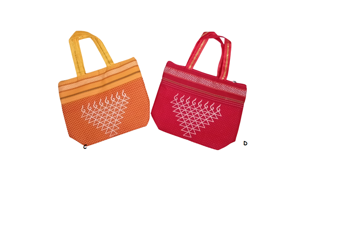 Handcrafted small bag with ethnic kolam design made by Indian Artisans keeping in mind the latest fashion. The cotton strap adds beauty to the bag and comes with zipper closure and 1 Compartment along with one Zippered Pocket.