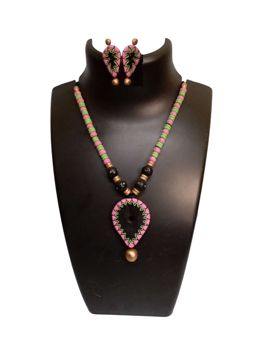 This elegant piece of terracotta ethnic style pendant necklace set with matching earrings can be worn with traditional sarees, lehengas for special occasions. This will make you stand out in any crowd. Best gift for your loved ones.