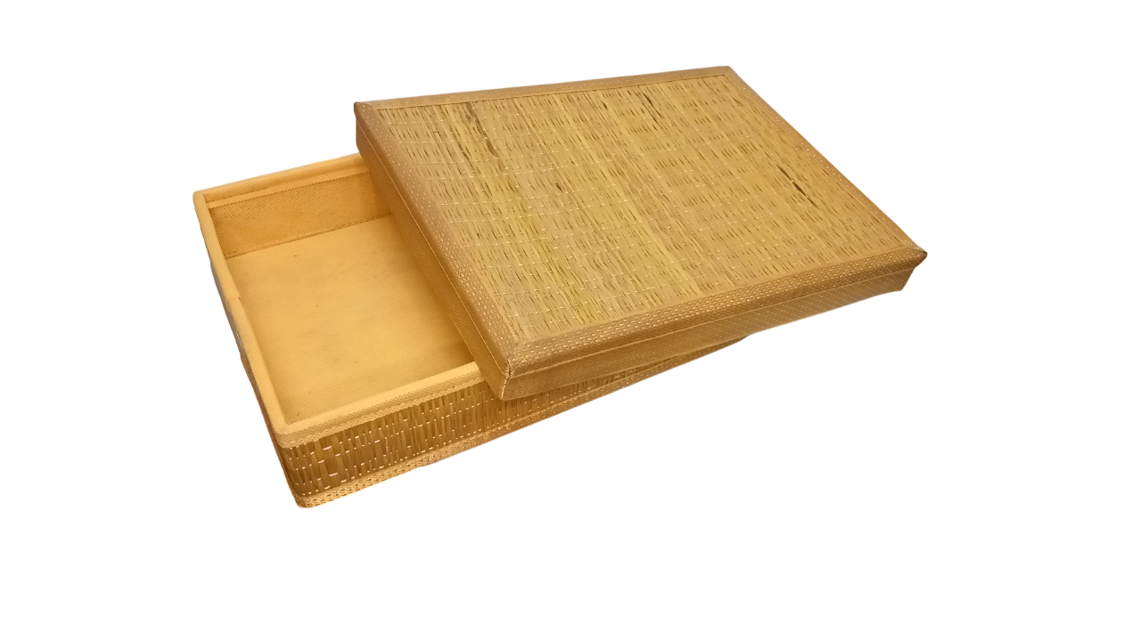 Trendy eco multipurpose square box with lid hand made from woven kora river grass with zari border and non woven fabric lining. They are colorful and handy to store almost anything and everything( except eatable) . Also a fabulous gift for friends and family.