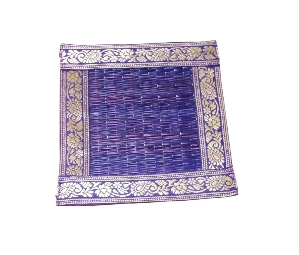 Trendy colorful table hot plate hand-made from woven kora river grass enhanced with gold zari border.A unique gift housewarming gifts and as a return gift for all occasions.
