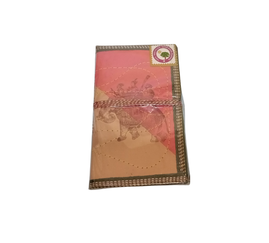 100% recycled eco-friendly handmade diary with Royal elephant print paper cover with Kantha work. Popularly used as a special diary for storing memories or spiritual notes. Also, a popular gift for all occasions.