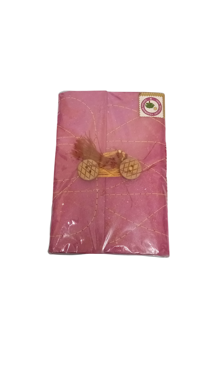 100% recycled eco-friendly handmade diary with paper cover styled with the wooden buttons on the top with Kantha work. Popularly used as a children’s diary and a special diary for storing memories or spiritual notes. Also, a popular gift for all occasions.