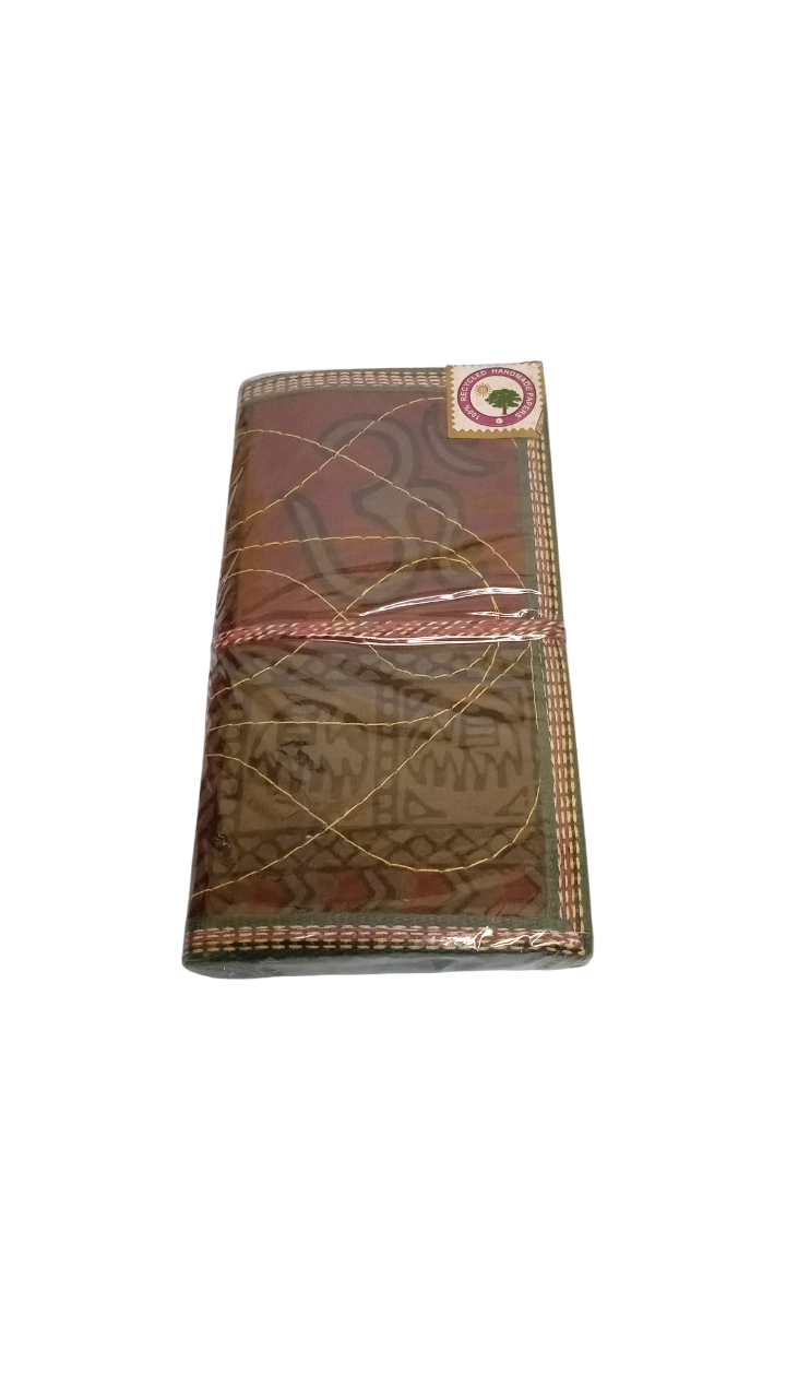 100% recycled eco-friendly handmade diary with Om printed fabric cover with Kantha work. Popularly used as a special diary for storing memories or spiritual notes. Also, a popular gift for all occasions.