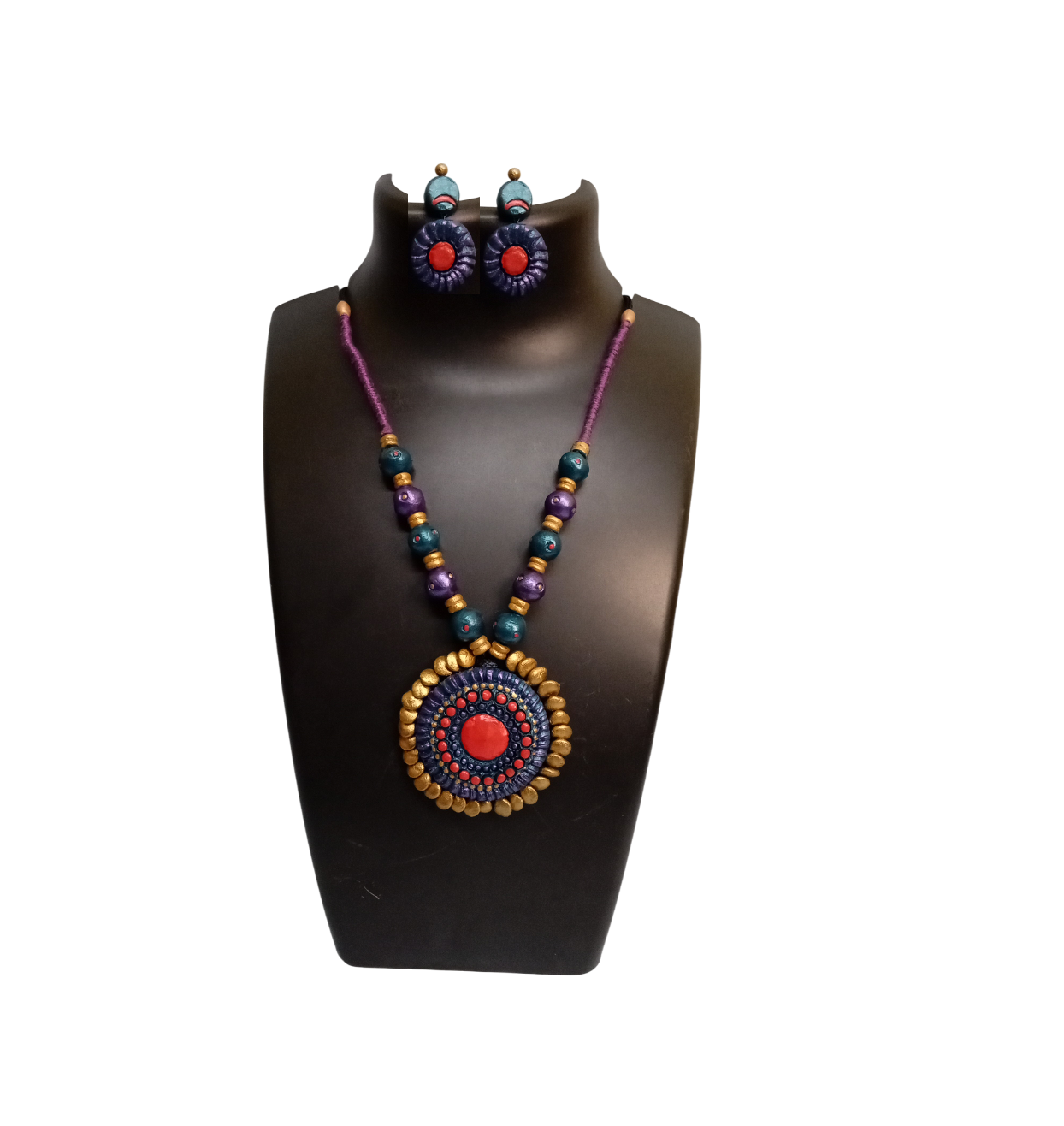 Bright and earthy colored, beaded terracotta trendy necklace set with matching earrings and adjustable thread can be matched with your t-shirts or Kurtis. Best gift for loved ones.