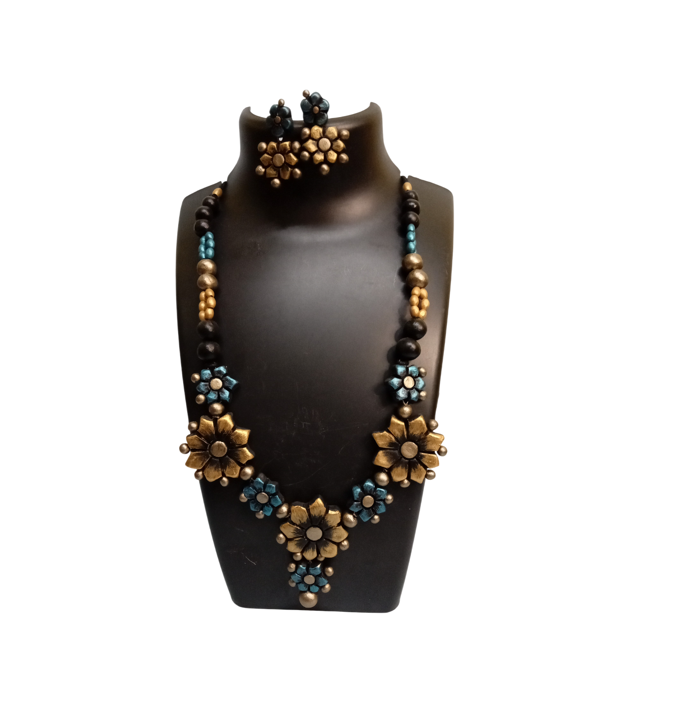 This trendy terracotta designer haram necklace set with matching earrings is suitable for traditional wear during special occasions and makes you stand out in the crowd. Best gift for loved ones.