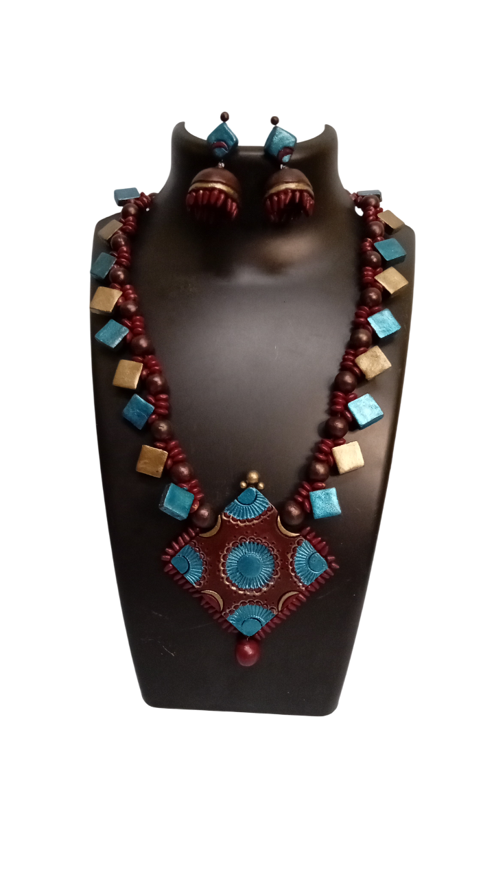 Be the first to review “Trendy Terracotta Blue Necklace And Earring Set”